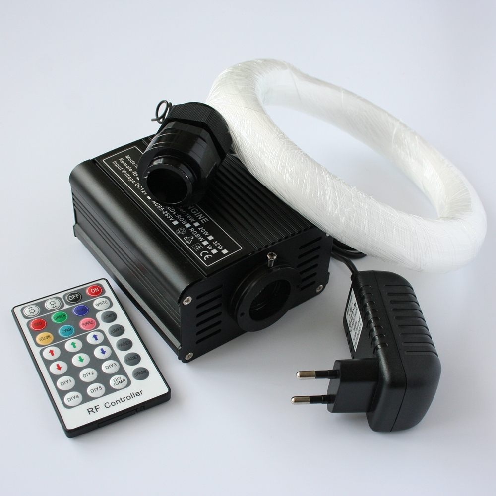Источник света для фибероптических волокон RGB с пультом ДУ. Возможность выбора различных цветов и режимов свечения. До 300 волокон толщиной 0,75 мм. До 500 волокон толщиной 0.5 мм.