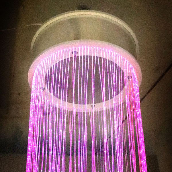 Фибероптические волокна равномерно распределены по окружности основания. В центре расположено безопасное зеркало для увеличения визуального эффекта свечения оптоволокна. Светодиодный источник света. Управление светом с ПУЛЬТА ДУ. Длина нитей 2м