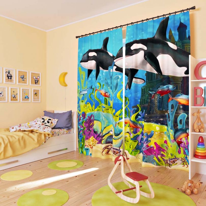 Печать на шторах односторонняя. Иллюстрации к товарам на сайте представлены на примере изделий с размерами высотой 270 см и шириной 150 см на одно полотно (общая ширина изделия из двух полотен - 300 см). При зказе изделий других размеров может измениться пропорция рисунка. Кадрирование рисунка к выбранным Вами размерам изделия производится на усмотрение дизайнера. Если Вам важно согласовать макет - сообщите об этом при оформлении заказа. Крепление: Шторная тесьма - Машинная стирка при 30 °С