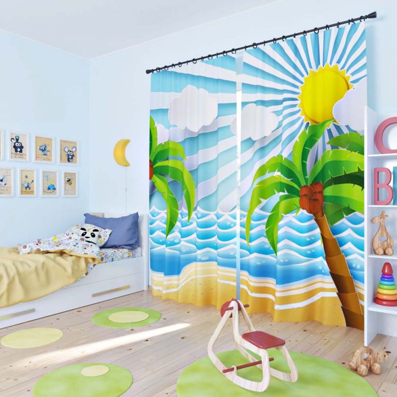 Печать на шторах односторонняя. Иллюстрации к товарам на сайте представлены на примере изделий с размерами высотой 270 см и шириной 150 см на одно полотно (общая ширина изделия из двух полотен - 300 см). При зказе изделий других размеров может измениться пропорция рисунка. Кадрирование рисунка к выбранным Вами размерам изделия производится на усмотрение дизайнера. Если Вам важно согласовать макет - сообщите об этом при оформлении заказа. Крепление: Шторная тесьма - Машинная стирка при 30 °С