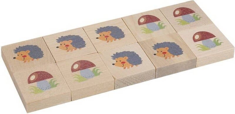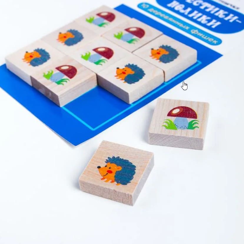 - комплект деревянных фишек (размер 30х30х10 мм) - 10 шт (ежиков - 5, грибочков - 5).
