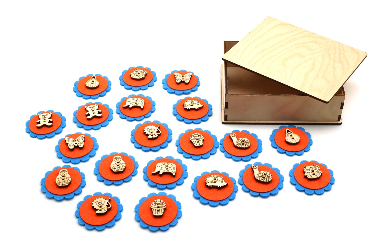 Правила игры. Разложите карточки картинками вниз. По очереди переворачивайте по две карточки таким образом, чтобы все могли видеть изображенные на них картинки. Если картинки на карточках одинаковые, то игрок забирает их. Он может продолжать игру до тех пор, пока он находит карточки с одинаковыми картинками. Если картинки на карточках не совпадают, то игрок кладёт карточки обратно картинками вниз, и ход переходит к следующему игроку. Выигрывает тот игрок, который к концу игры наберет наибольшее количество парных карточек.