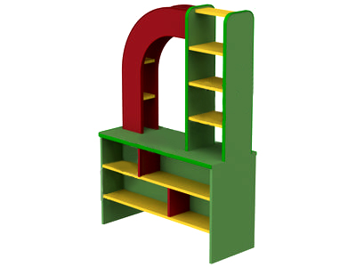 Игровая зона «Аптека». Выполнен из ламинированной ДСП (ЛДСП) 16 мм, обрамлен кантом ПВХ 2 мм, все углы закруглены. Уголок с оригинальной арочной надстройкой и открытыми полками для хранения игрушек. Также уголок можно использовать в таких ролевых играх как: магазин, супермаркет, почта, билетная касса, выставка игрушек и мн.другого. Цвет на выбор. Возможно изготовление с фотопечатью.