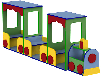 Игровая зона «Поезд». Выполнен из ламинированной ДСП (ЛДСП) 16 мм, обрамлен кантом ПВХ 2 мм, все углы закруглены. Поезд совсем как настоящий: есть фары, колеса, труба и сидения для 5-ти пассажиров и машиниста. Эта игровая зона прекрасно подойдет для сюжетно-ролевых игр. Также во время игры дети получают первые представления о труде машиниста и проводника, закрепляют знания о видах транспорта. У детей воспитываются дружеские взаимоотношения, умение взаимодействия в парах. Колеса и фары закрепляют первоначальные знания о геометрических формах. Цвет на выбор. Возможно изготовление с фотопечатью.