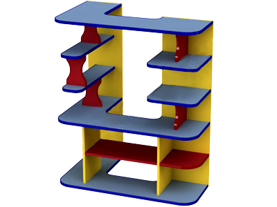 Игровая зона «Универсам». Выполнен из ламинированной ДСП (ЛДСП) 16 мм, обрамлен кантом ПВХ 2 мм, все углы закруглены. Игровой стеллаж с большим количеством открытых полок для «товаров» и прилавком, на котором можно расположить кассу и весы. Стеллаж приставляется к стене, таким образом с одной стороны располагается вход для «продавца», а с другой - витрина с продукцией.Магазин поможет детям закрепить знания о профессии продавца, а «расчеты» за товар формируют навыки счёта, закрепляют правила выполнения простых математических действий. Цвет на выбор. Возможно изготовление с фотопечатью.