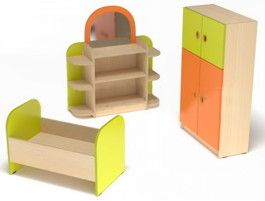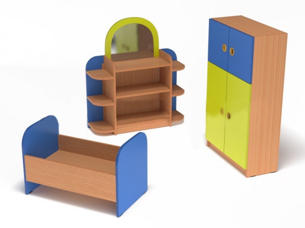 Размер, мм Кровать: 450х400х700; трюмо: 1000х250х782; шкаф: 1000х250х600 мм
