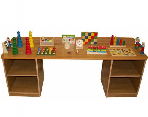 Дидактический стол пригодится для размещения на нем дидактический пособий. За таким столом могут заниматься несколько деток одновременно. Занятия с дидактическими материалами способствуют развитию у детей сенсорного воспитания, формы, величины и цвета.