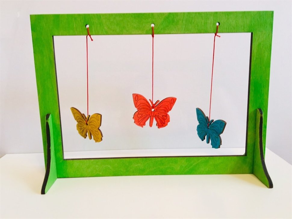 3 бабочки подвешиваются на одной или на разной высоте. Тренажер помогает в постановке дыхания.