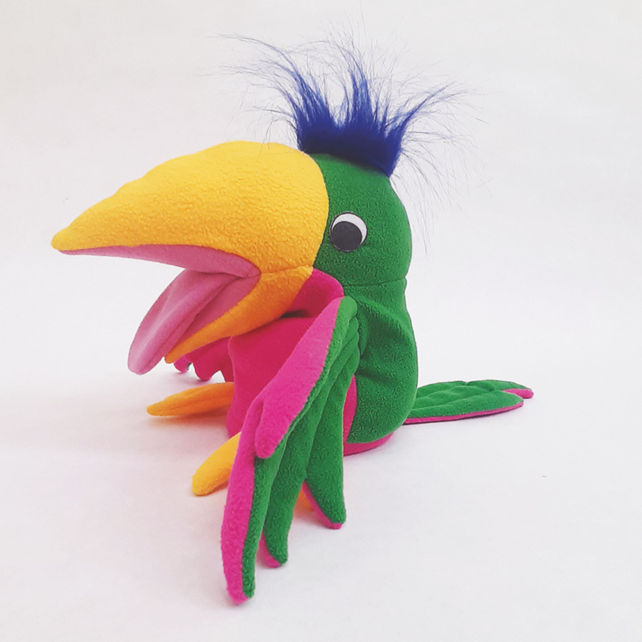 В игрушке четко выделены артикуляционные органы: язык, челюсти. Надев игрушку на руку можно «управлять» языком, нижней и верхней челюстью. Также игрушку можно использовать в свободных, театрализованных, дидактических и других играх. Подробнее