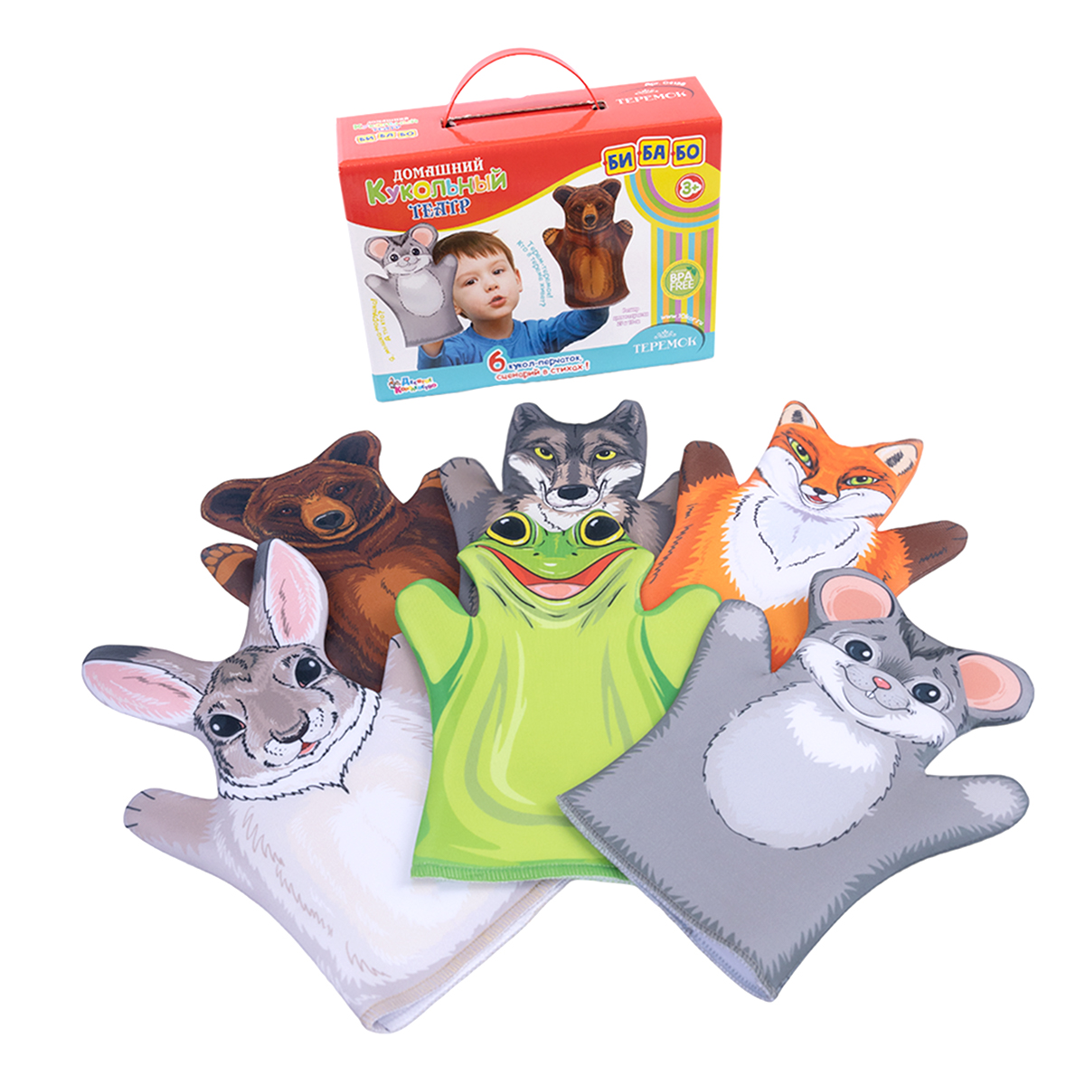 Домашний кукольный театр. «Теремок» серия «Би-ба-бо» (6 кукол-перчаток)