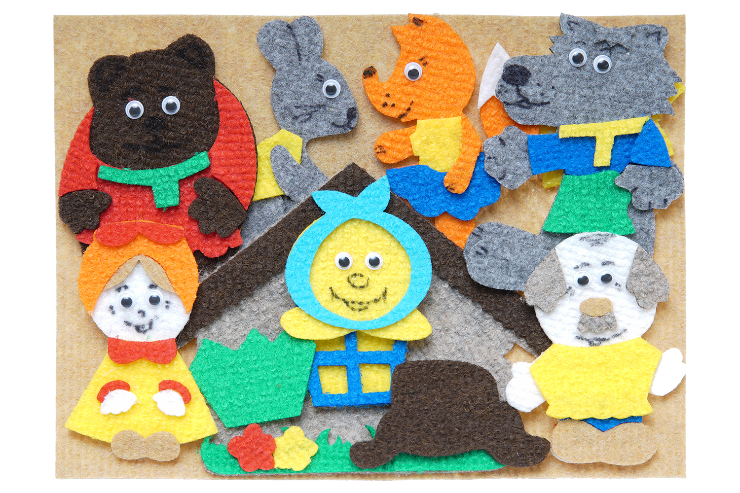 Поле 20*30см, дед, бабка, колобок, домик, медведь, волк, лиса, заяц, пенек, солнышко. Фигурки от 4,5см до 10см.