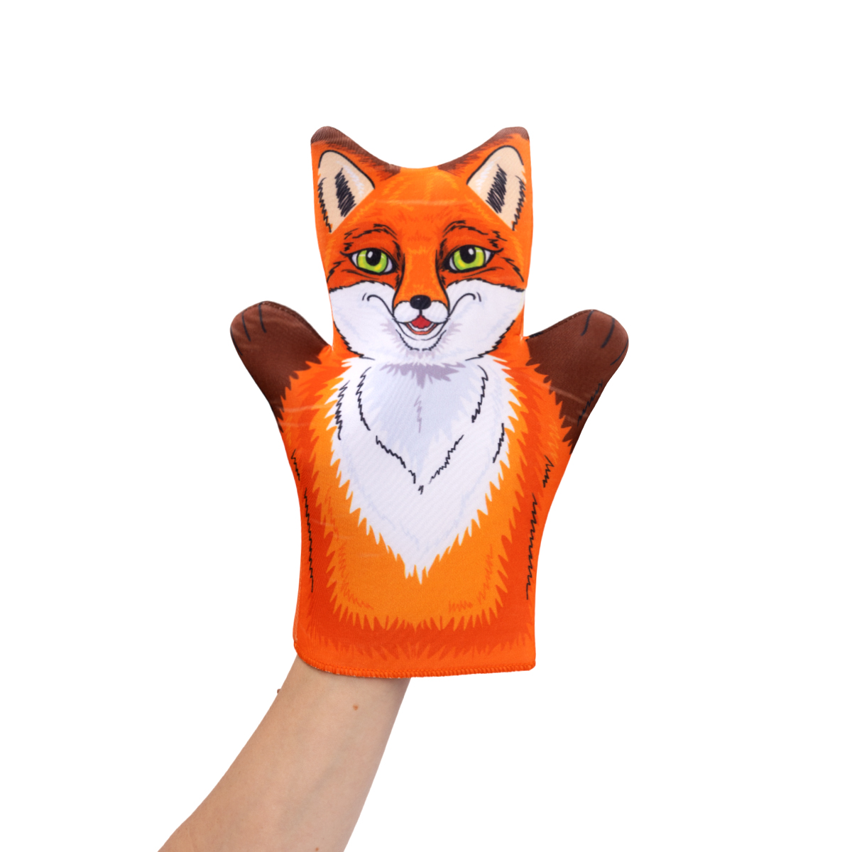 Игрушка-перчатка изготовлена полностью из стойкого к износу неопрена, размер 25х18 см и соответствуют всем требованиям безопасности.