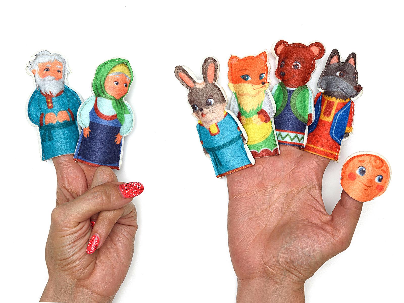Шесть персонажей высота фигурки 9см. Бабка,дедка, медведь, волк, заяц,лиса + колобок высота 4см.