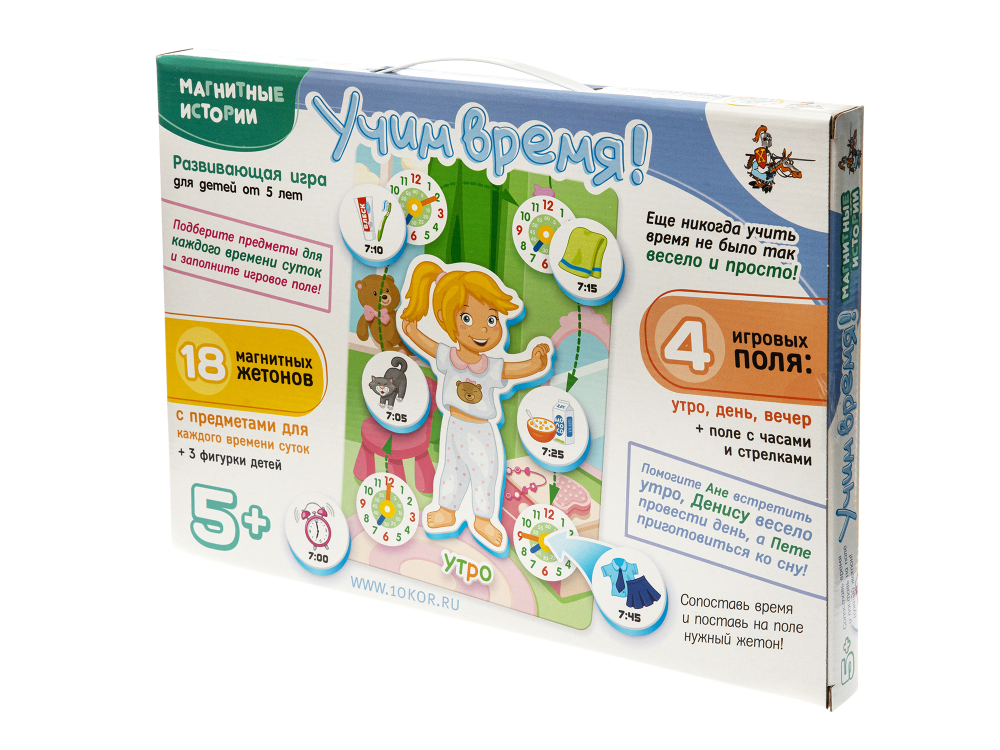 Набор Магнитные истории «Учим время» - это прекрасный игровой набор как для проведения сюжетно-ролевых игр с ребенком или группой детей, так для самостоятельной игры.