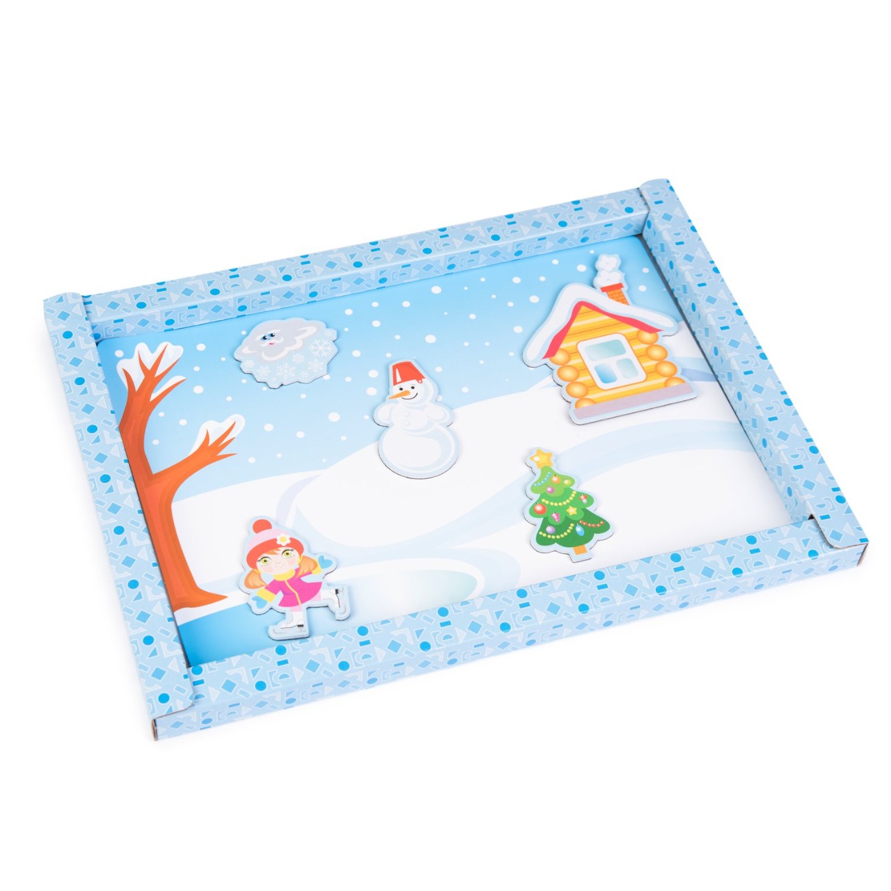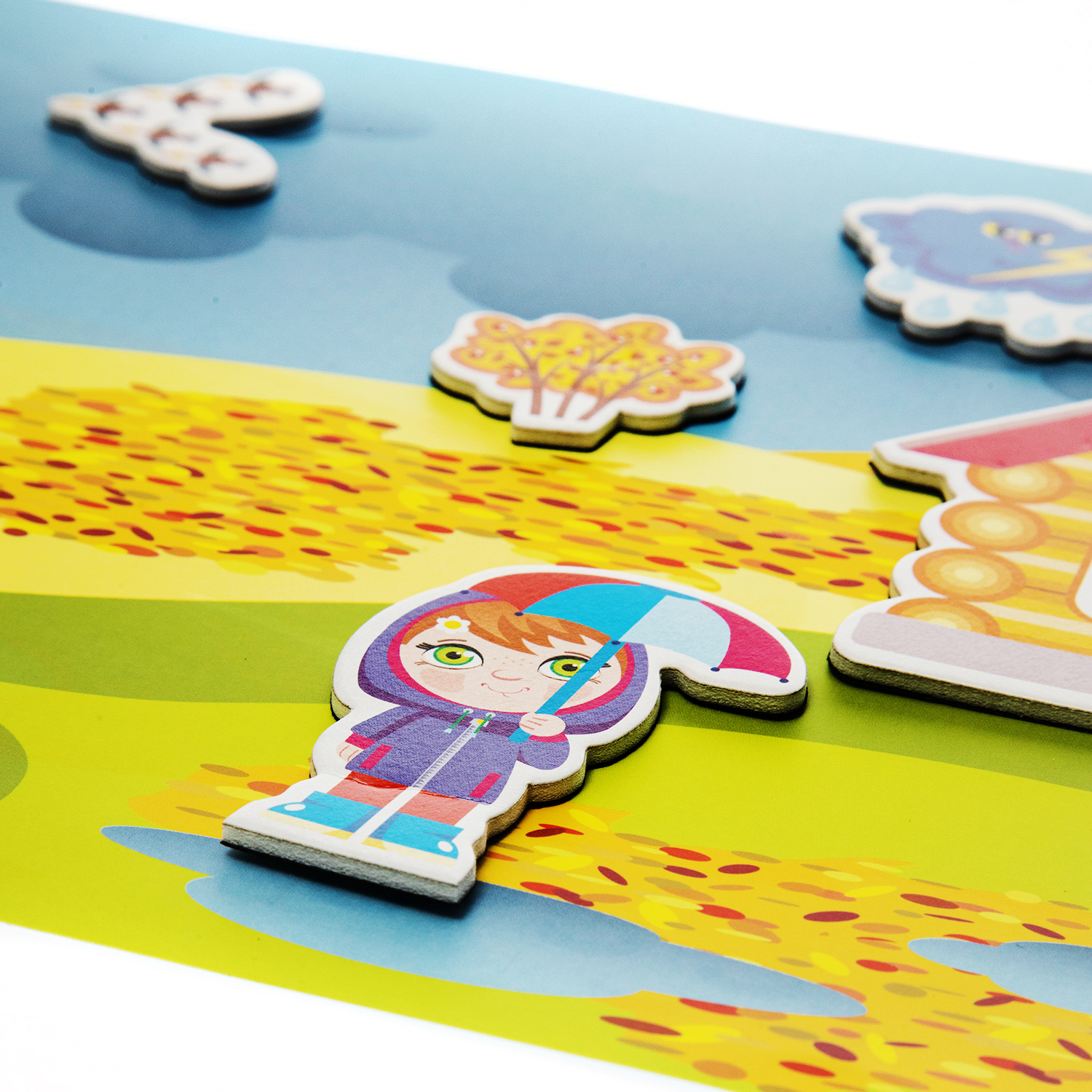Выберите игровое поле, закрепите его на доске с помощью магнитных уголков и помогите ребенку подобрать соответствующие выбранному полю фигурки. Магнитная основа поля позволяет фигуркам хорошо держаться на нем.