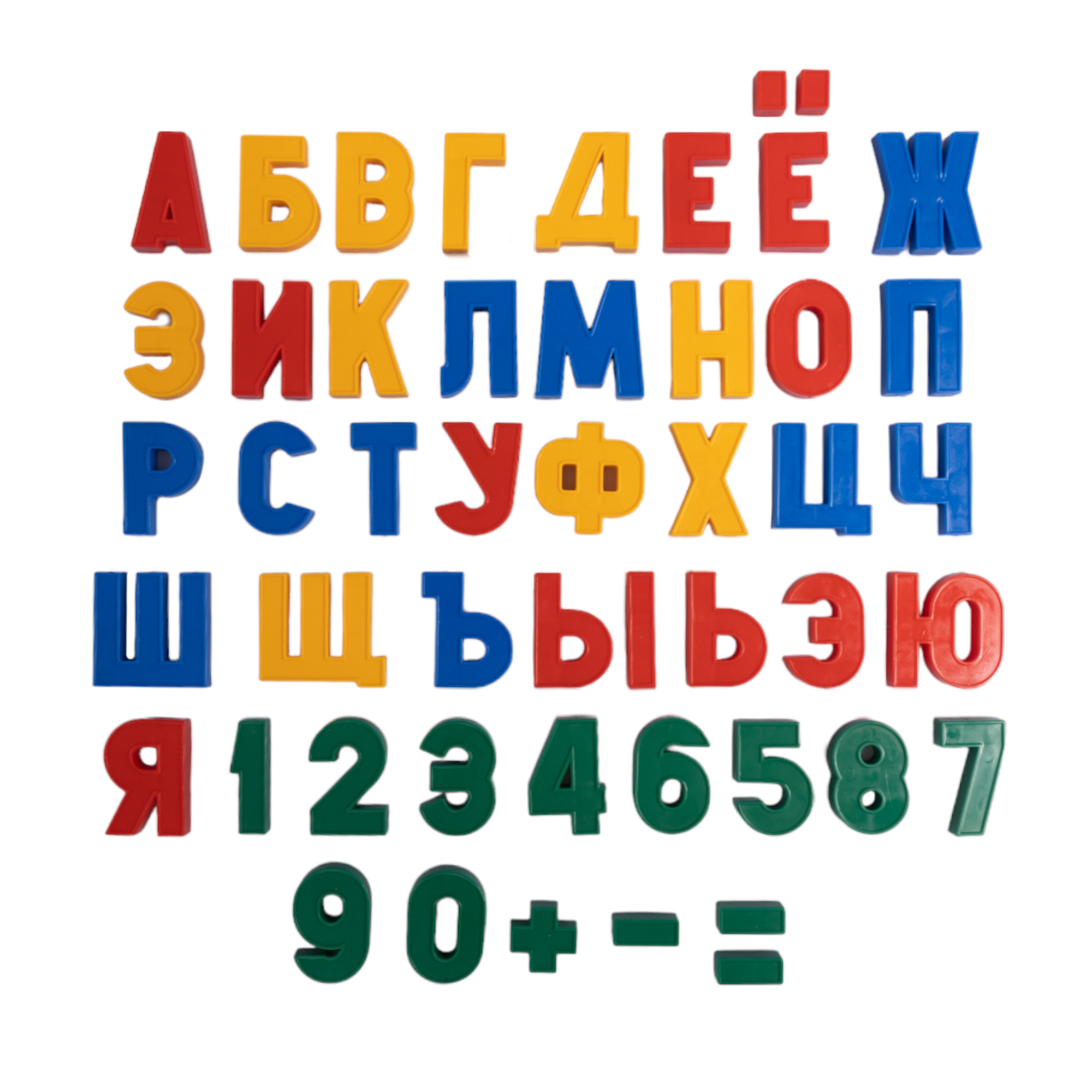 Набор состоит из 79 букв русского алфавита, цифр и знаков, высотой 2,5 см.
