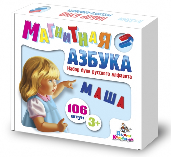 Магнитная азбука состоит из 106 букв русского алфавита, высотой 3,5 см.
