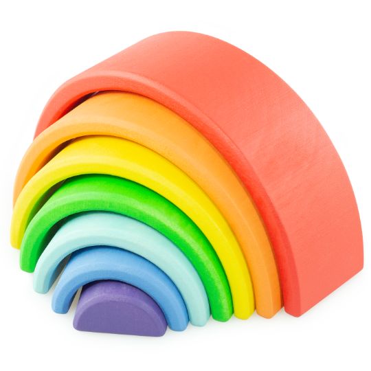 Яркая, многофункциональная игрушка для ребенка. Идеи для использования дуг в игре: колыбельки для игрушечных зверей, балансировка (ставим дуги друг на друга), мостики через тканевую речку, тоннель для игрушечного поездка или гараж для машинок. Состав: 7 деревянных дуг разных цветов. Общий размер игрушки 13х7 см.