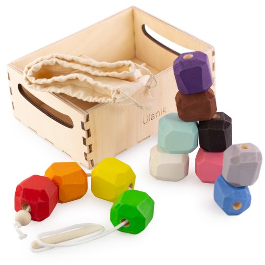 Развивающая игрушка для детей, которая сочетает в себе: шнуровку, сортер, балансир, игру анти-стресс. Состав набора: 12 цветных камешков средним размером 3,3х4 см, шнурок с деревянным наконечником, льняной мешочек, деревянный поднос для удобного хранения.