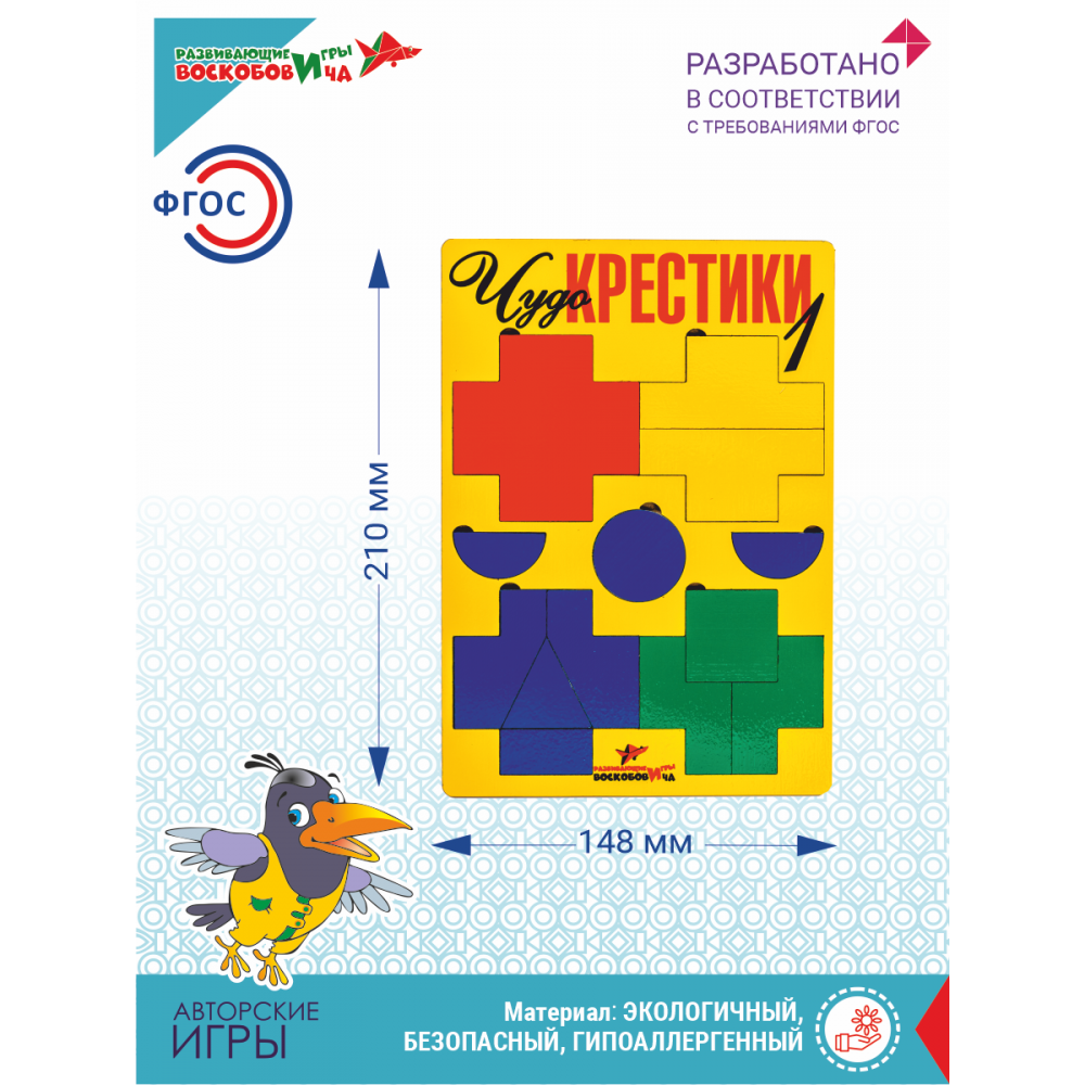 Конструктор «Чудо-Крестики 1» предназначен для изучения геометрических фигур, формирования логического мышления, математических понятий, пространственных представлений, развития сенсорных способностей (размер, цвет), творческого конструирования и мелкой моторики рук.
