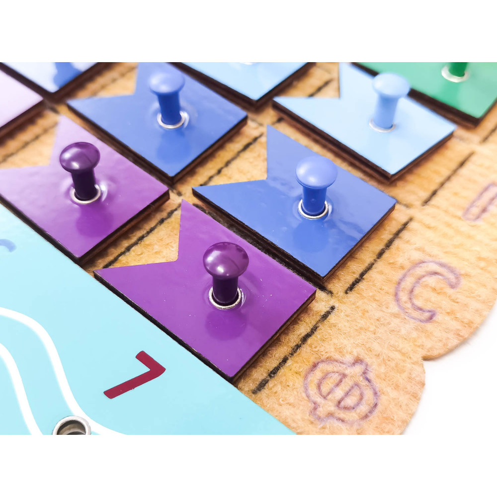К радужным мачтам по вертикальным, горизонтальным и диагональным рядам прикрепляются флажки, согласно условиям логико-математических задач из сборника. Переходя от простых задач к сложным, ребята учатся основным математическим операциям, разивают логику, пространственное мышление и мелкую моторику.