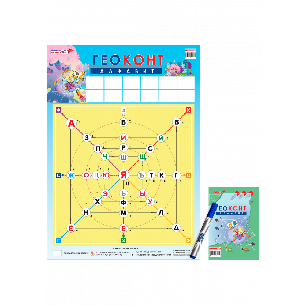 Состав: Плакат (410х780 мм, бумага с глянцевым покрытием) с изображением поля Геоконта и алфавита.