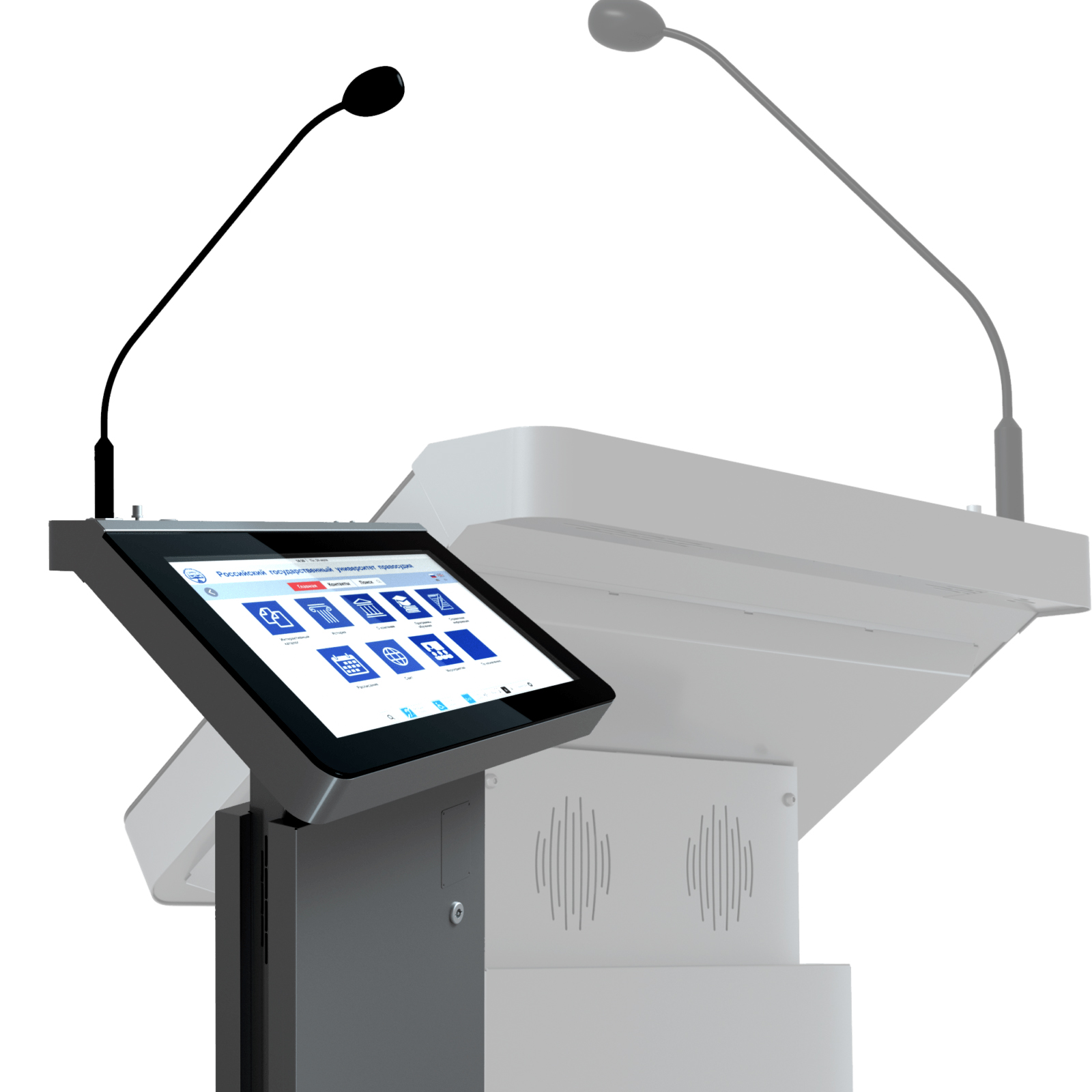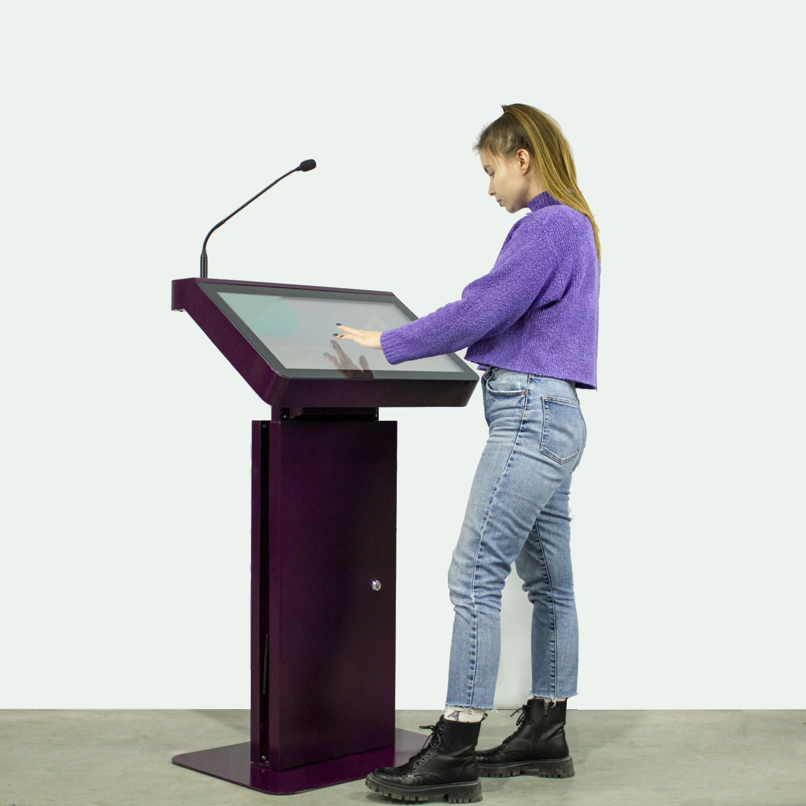 Интерактивная трибуна - мультимедийный помощник публичных выступлений. Оборудование выполнено в виде удобной трибуны с сенсорной панелью. Интерактивная панель — это интегрированный компьютер с микрофоном и другим оборудованием.