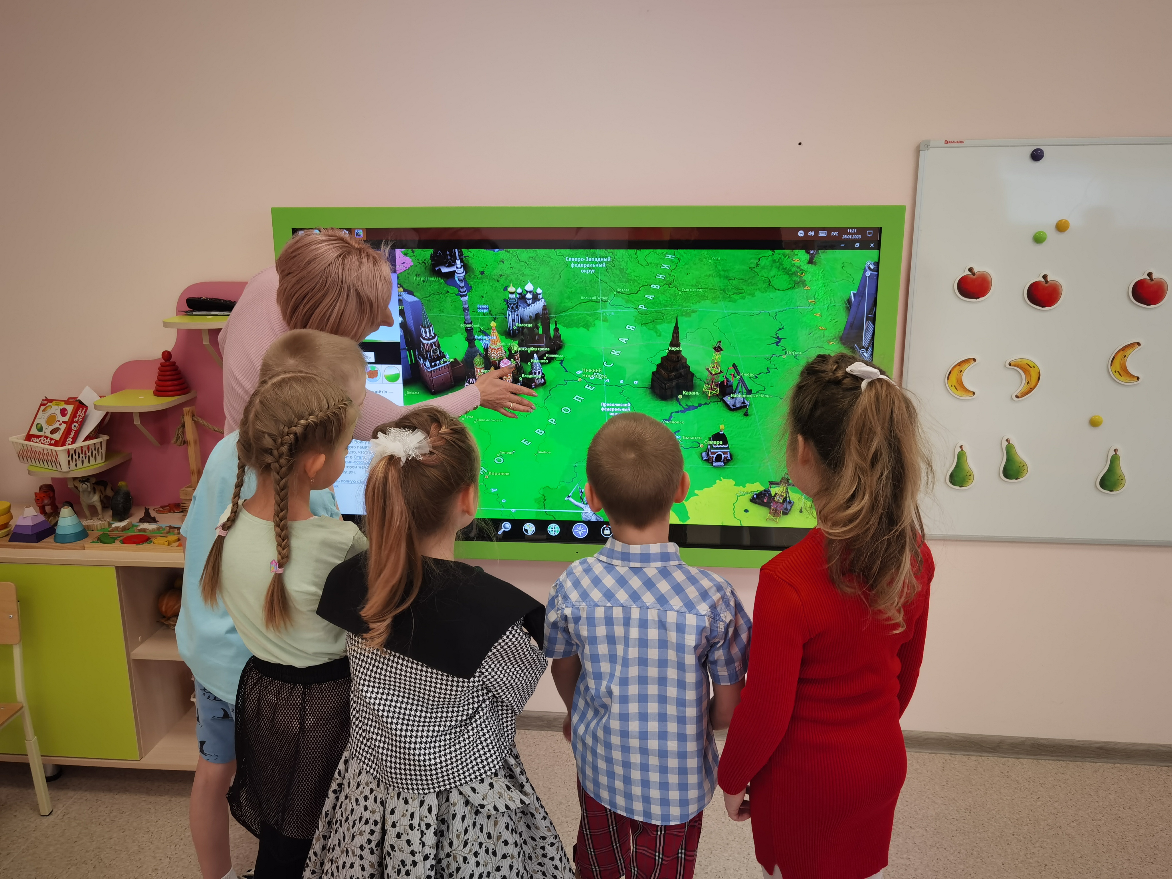 Детская интерактивная панель «Уникум-1» с сенсором нового поколения на 10 касаний, двумя операционными системами (Android) и USB-входом для подключения «флешки», веб-камеры или цветного принтера. 85 развивающих и игровых приложений в комплекте.