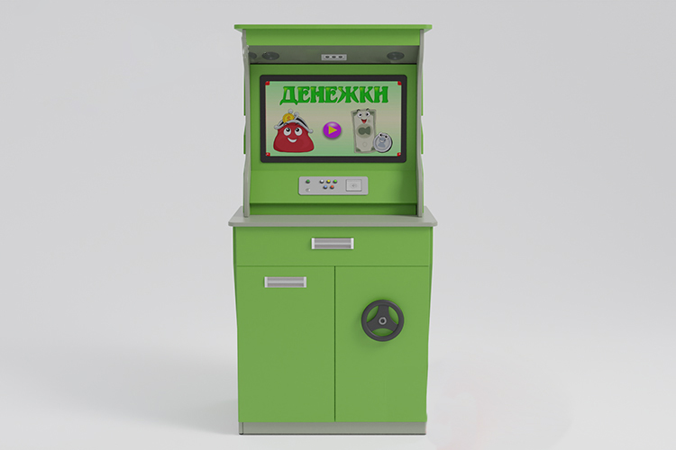 Уникальная конструкция и грамотно подобранная комплектация безусловно привлекут внимание ребенка, а установленное интерактивное ПО заинтересует своими играми, анимацией и увлекательными заданиями. Комплекс оснащен обучающим модулем идентификации банкнот, интерактивным тренажером, голосовым помощником, сейфом с электронным замком, муляжами банкнот РФ различных номиналов.