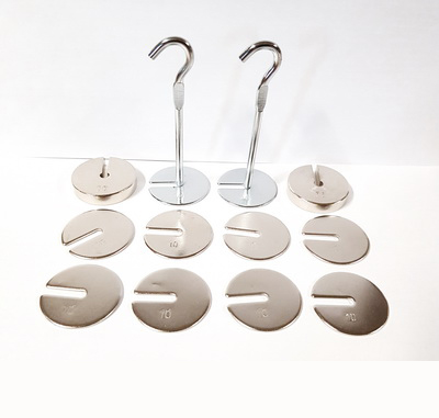 Набор подходит для изучения сил тяжести, трения, упругости. С помощью экспериментов можно пронаблюдать явления инерции, деформации. В основании диска установлен стержень, на который нанизываются другие диски (с отверстиями). Грузы промаркированы в соответствии с массой.