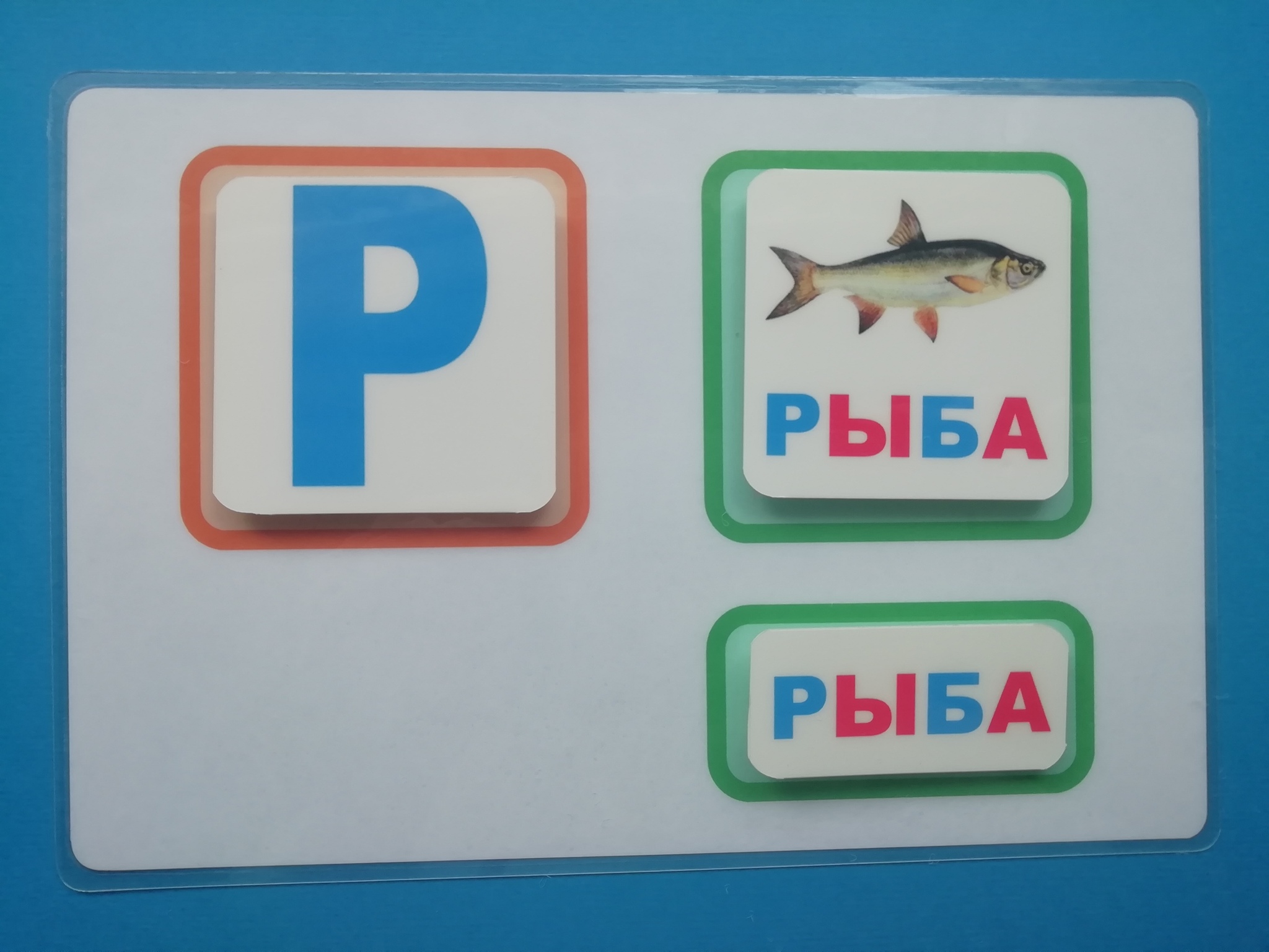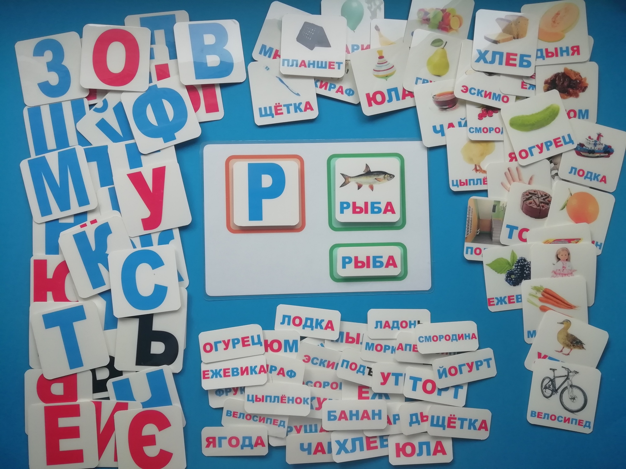 - 33 карточки со словом на каждую букву алфавита и картинкой (размером 6*6 см)