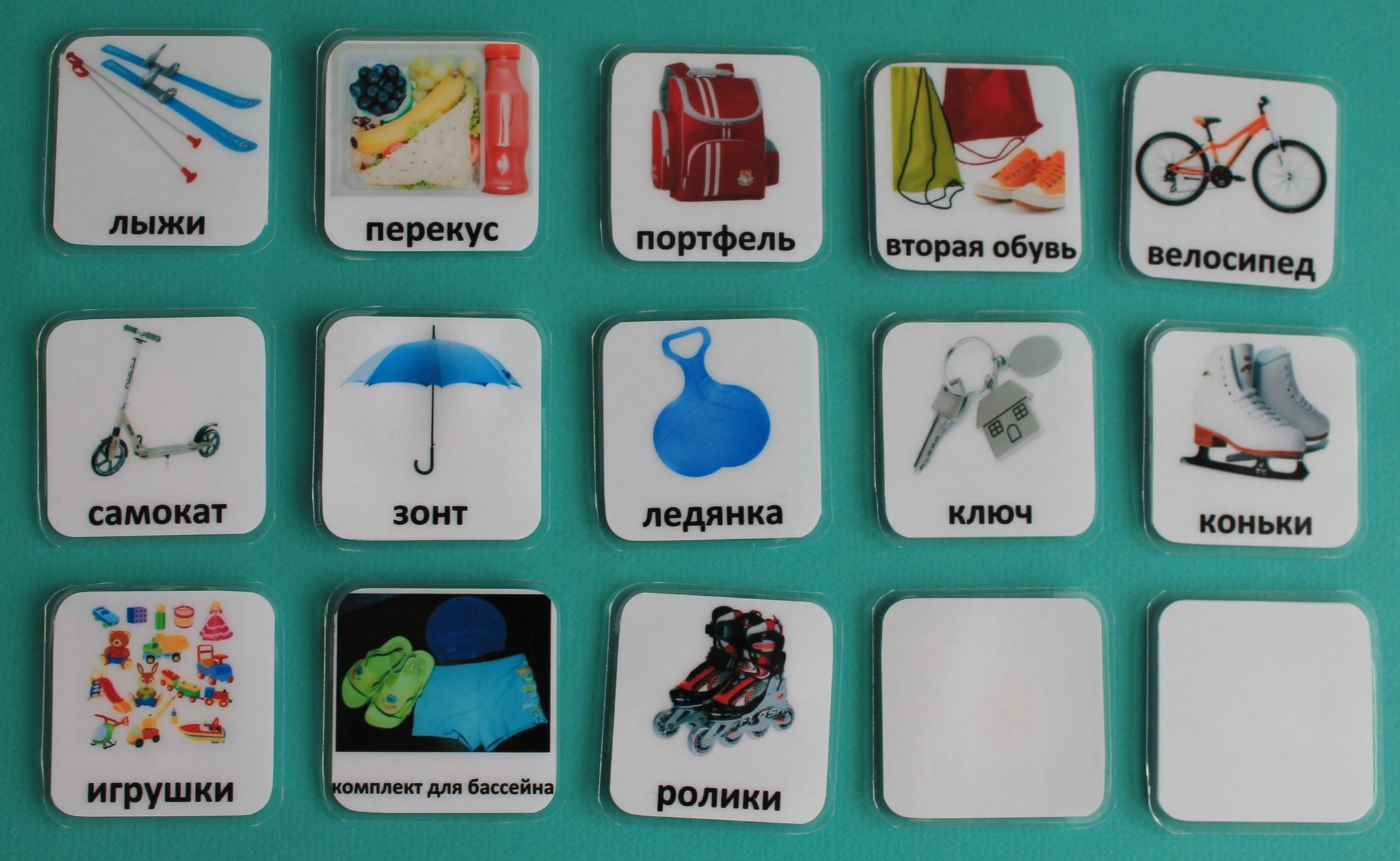 набор карточек "что взять с собой" 13 шт. + 2 пустые карточки