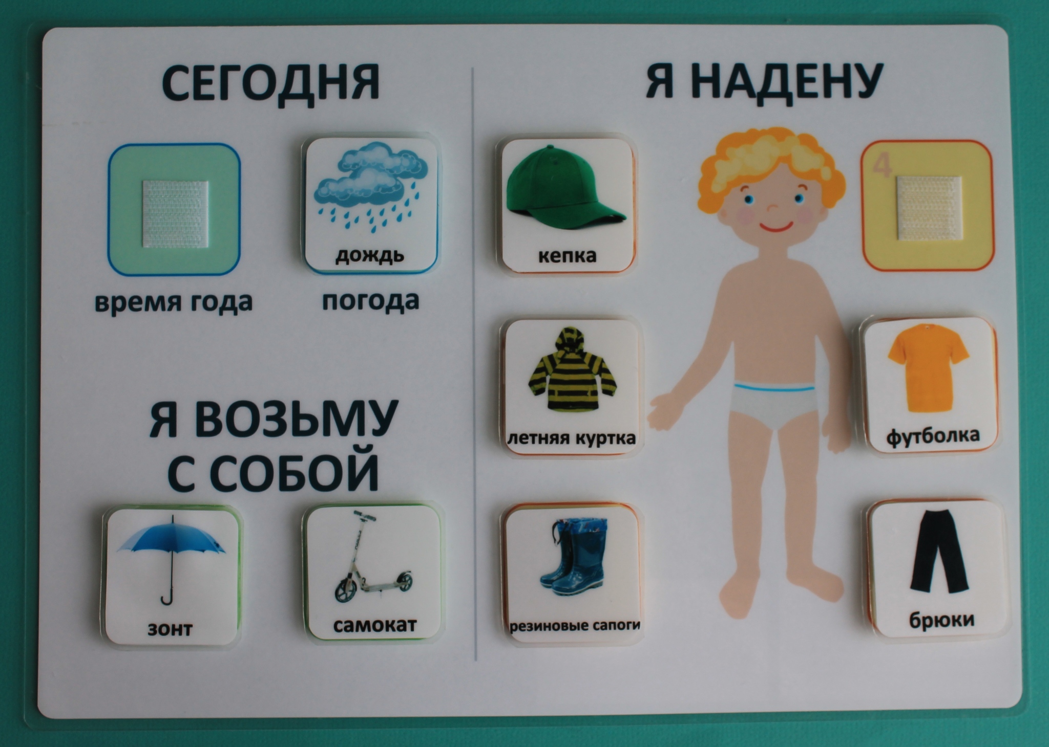 Пособие помогает проанализировать погоду и правильно подобрать одежду, а также соответствующие цели вещи, которые необходимо взять с собой.