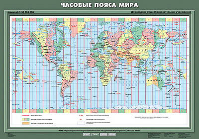 На карте даются границы часовых поясов, окрашиваются цветом территории, на которых принято поясное время и территории, не пользующиеся поясным временем.