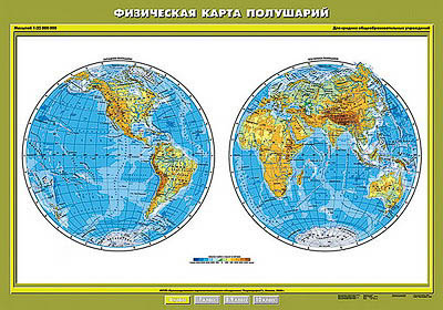 На карту нанесены береговая линия морей, реки, каналы, горизонтали, изобаты, отметки высот над уровнем моря, отметки глубин, вулканы, коралловые рифы, границы плавучих льдов, болота, ледники, фоновой окраской даны формы рельефа суши и океанов.