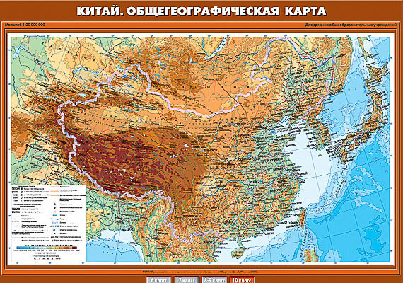 Учебн. карта "Китай. Общегеографическая карта" 70х100