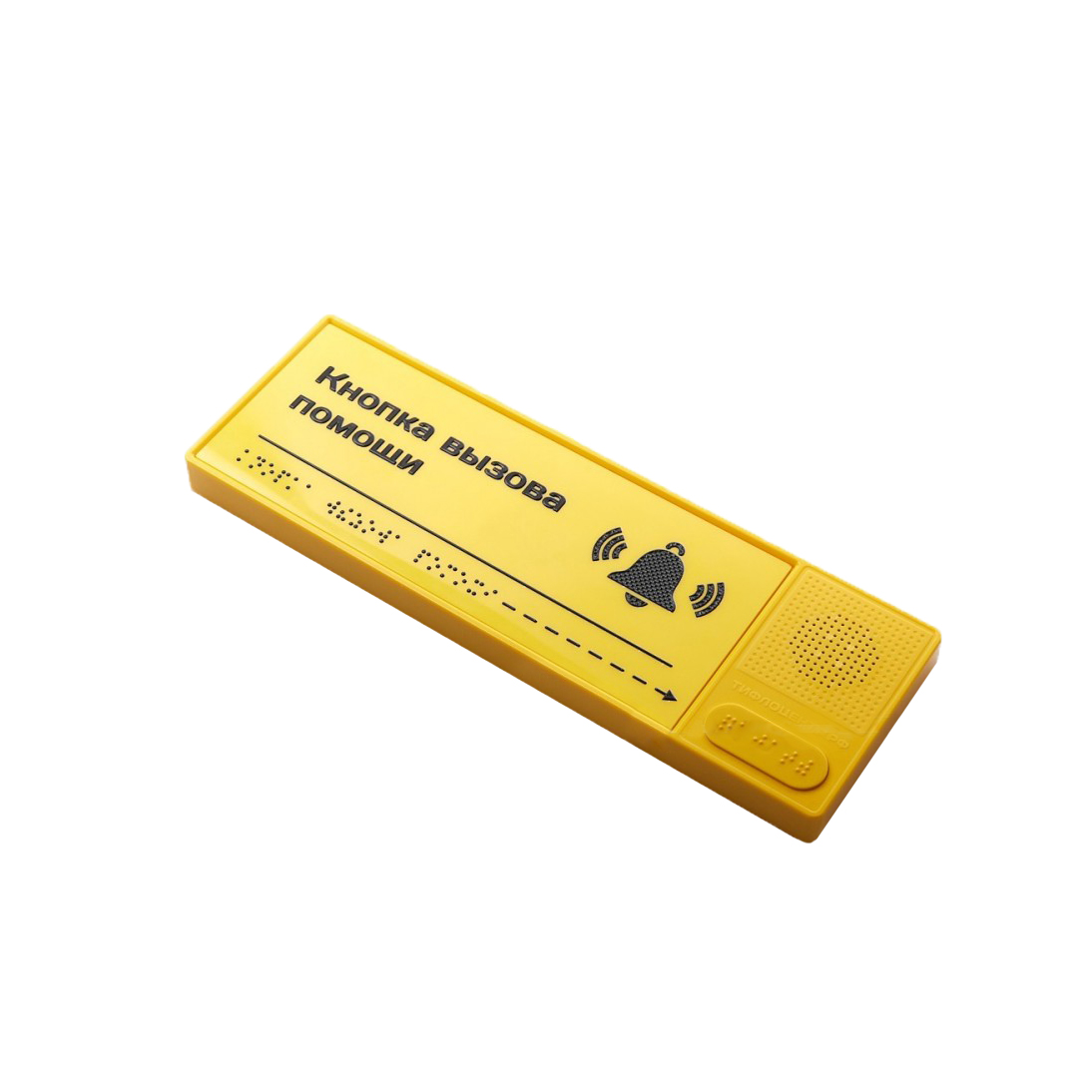 Табличка имеет информационные зоны с визуальной и тактильной информацией. Тактильная информация «Кнопка вызова помощи» должна быть выполнена с применением системы Брайля. Для людей, не владеющих техникой чтения по системе Брайля, информация должна быть дублирована тактильным плоскопечатным способом. На кнопке активации также должна быть нанесена тактильная информация по системе Брайля.