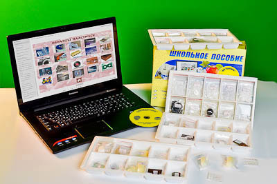 натуральные образцы (20 видов) – 80 шт., вкладыш информационный (2 вида) – 8 шт., интерактивное приложение на электронном носителе – 1 шт., руководство по эксплуатации – 1 шт.