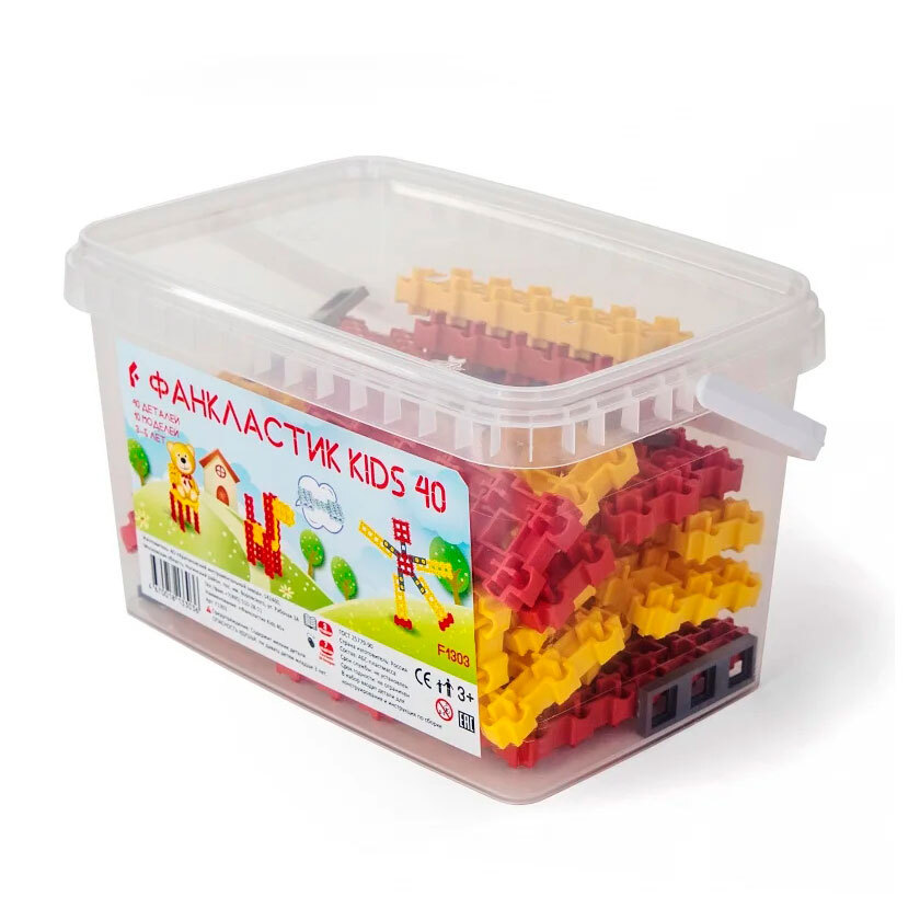 Набор, предназначенный для детей 3-5 лет. 40 деталей (2 цвета, защелки,переходники Lego)