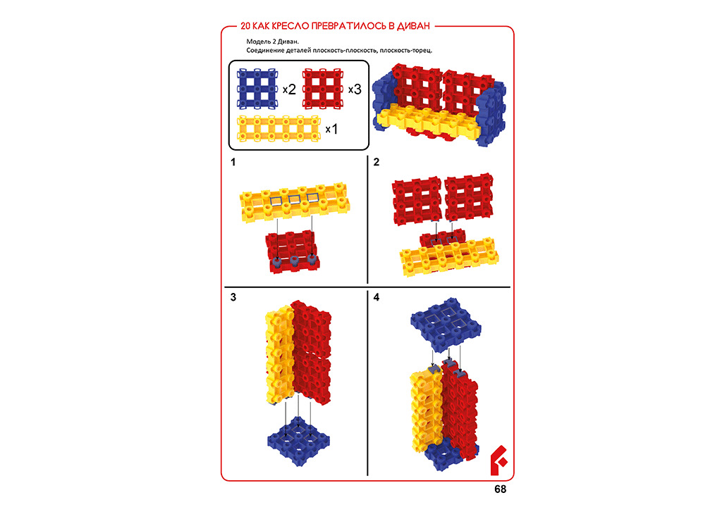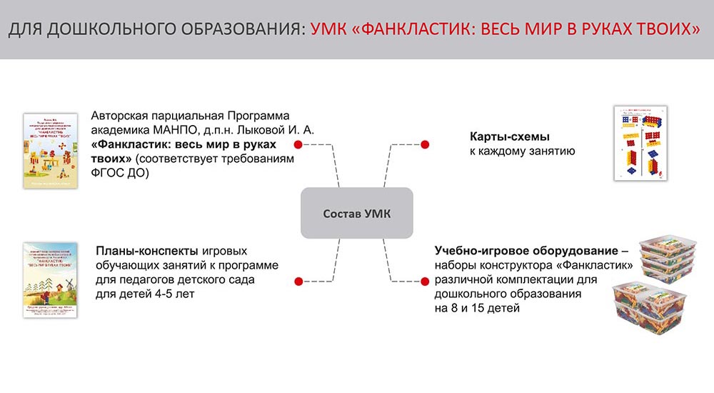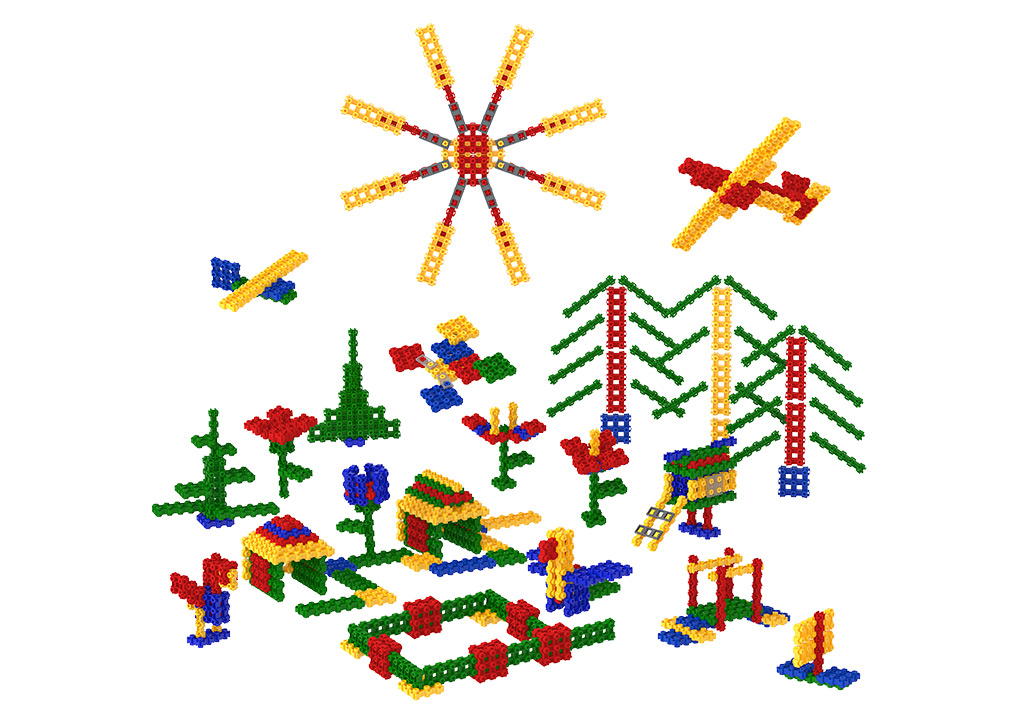 Набор предназначен для детей средней группы детского сада. Разработан с учетом 36 занятий, рассчитан на 8 детей (одновременной работы). Включает в себя 9 типов деталей, 6 цветов, защелки и скрепки, варианты планов-конспектов занятий для детей средней группы детского сада, карты-схемы сборки каждой модели (все материалы в электронном виде!). Детали конструктора сделаны из высококачественного АБС пластика.