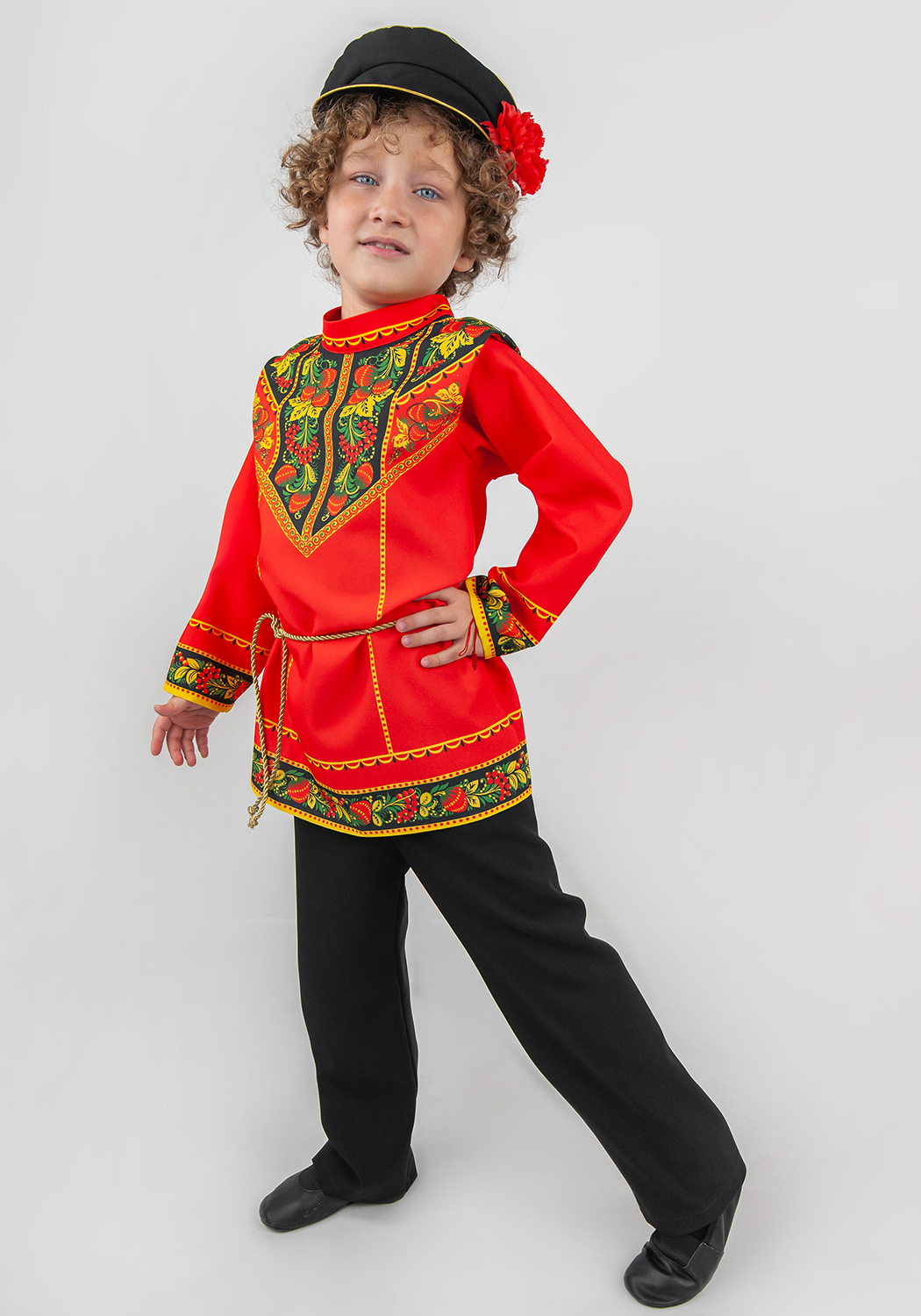 Русская народная рубаха Хохлома Задорная для мальчика