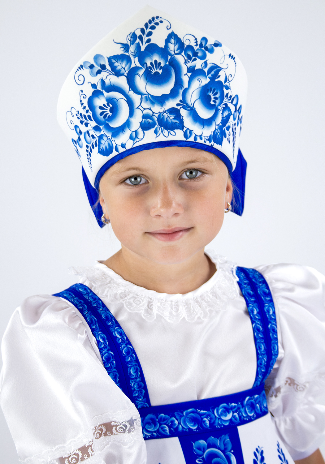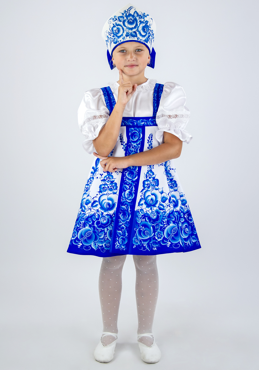 Русский народный костюм для девочки Гжель расписная