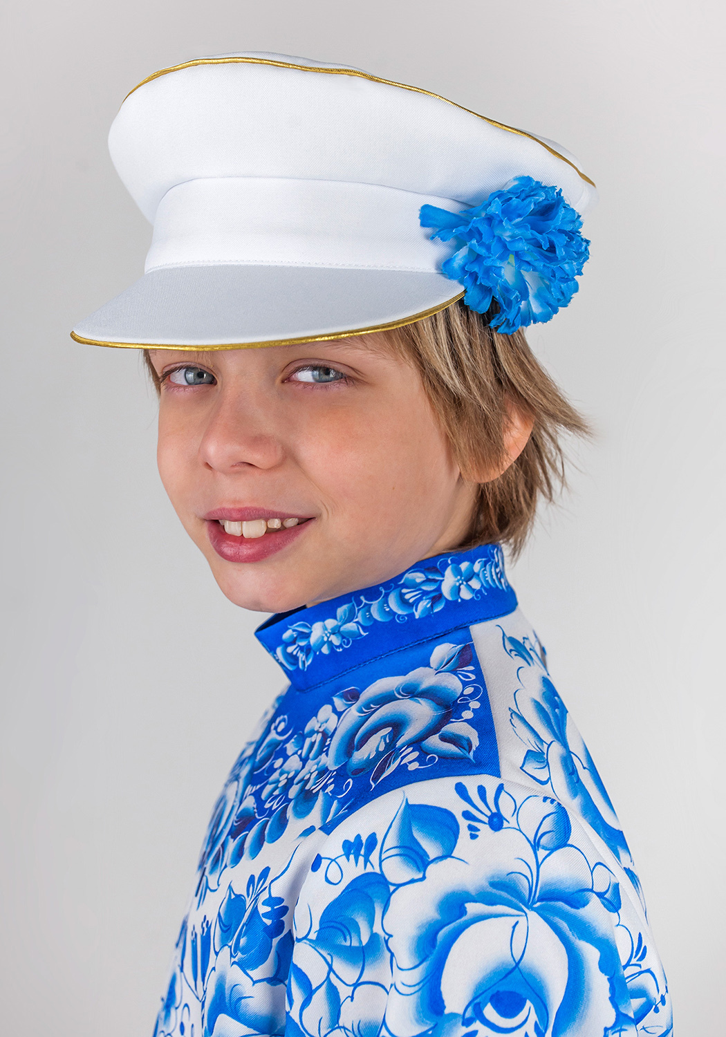 Русский народный костюм для мальчика Гжель расписная
