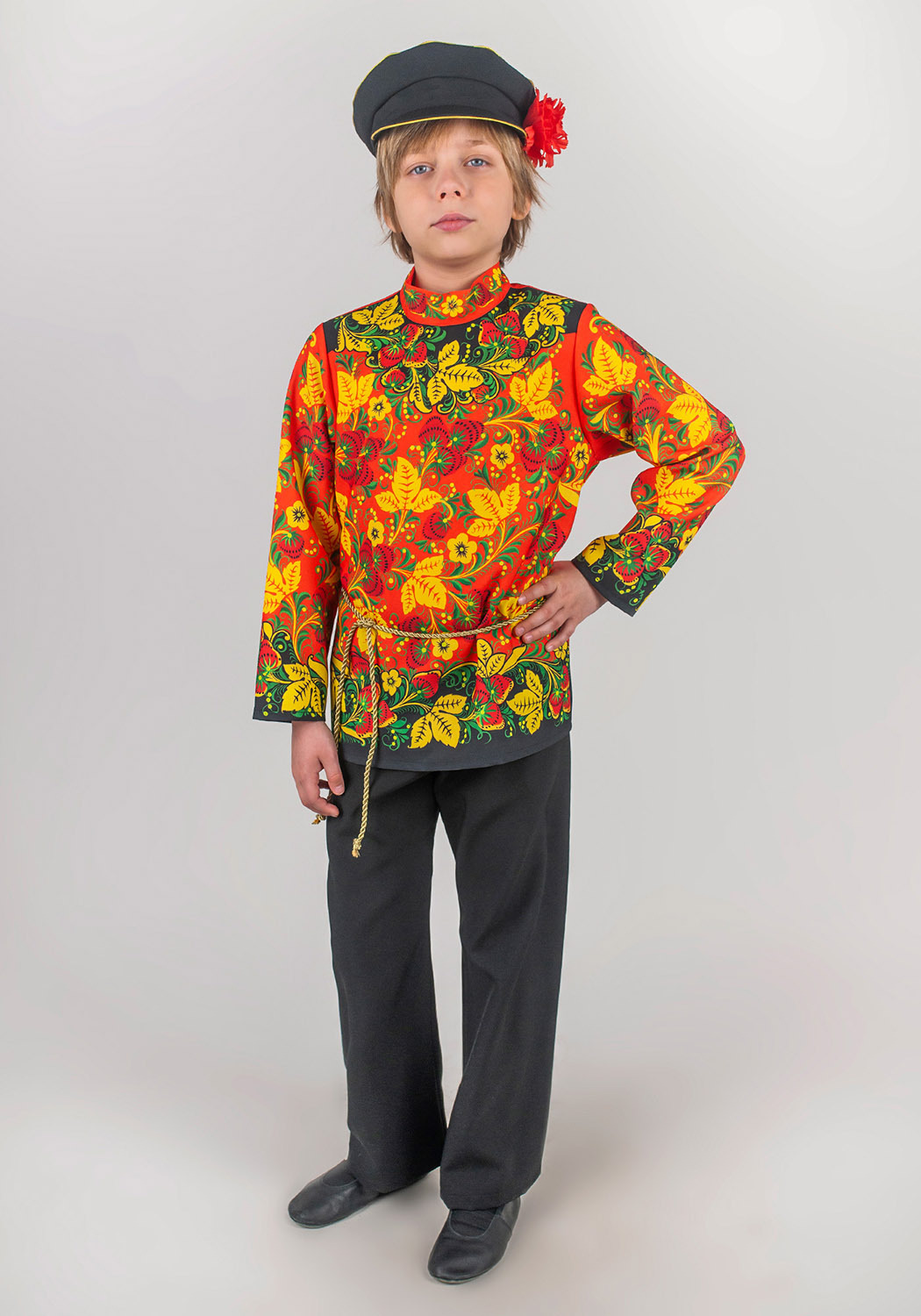 Русский народный костюм для мальчика Хохлома расписная Ягодка