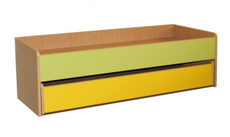 ЛДСП 16 мм, на спинках противоударный врезной кант 2 мм, на остальных деталях кромка 0,4 мм. Задние бортики кроватей выступают, что при выдвижении позволяет кроватям цепляться друг за друга. Нижние части опор(боковин) кроватей оборудованы колесными опора.