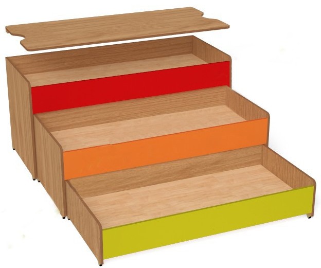 ЛДСП 16 мм, на спинках противоударный врезной кант 2 мм, на остальных деталях кромка 0,4 мм. Задние бортики кроватей выступают, что при выдвижении позволяет кроватям цепляться друг за друга. Нижние части опор(боковин) кроватей оборудованы колесными опора.