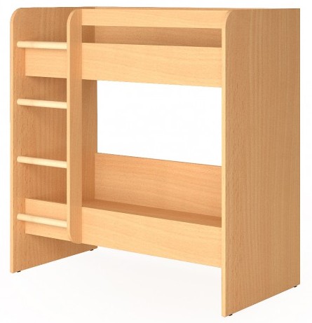 ЛДСП толщиной 16 мм, на спинках врезной кант 2 мм, на остальных деталях кромка 0,4 мм. Лестница выполнена из круглого массива диам. 28 мм