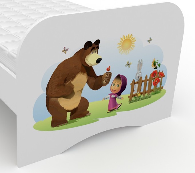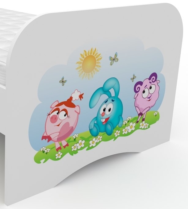 ЛДСП толщиной 16 мм, на спинках и царгах кровати противоударный врезной кант 2 мм. Спинки фигурные, имеют пластиковые подпятники. Рисунок - УФ-печать на выбор
