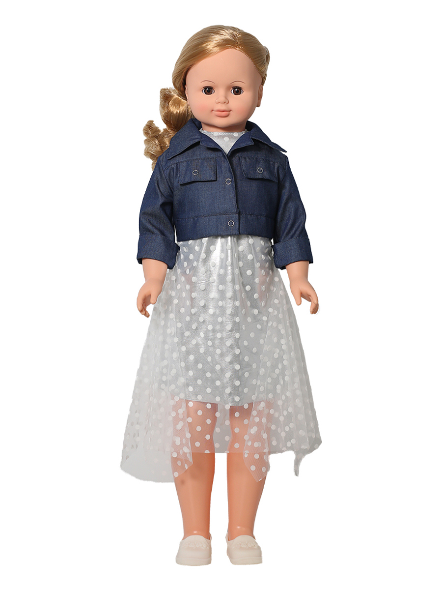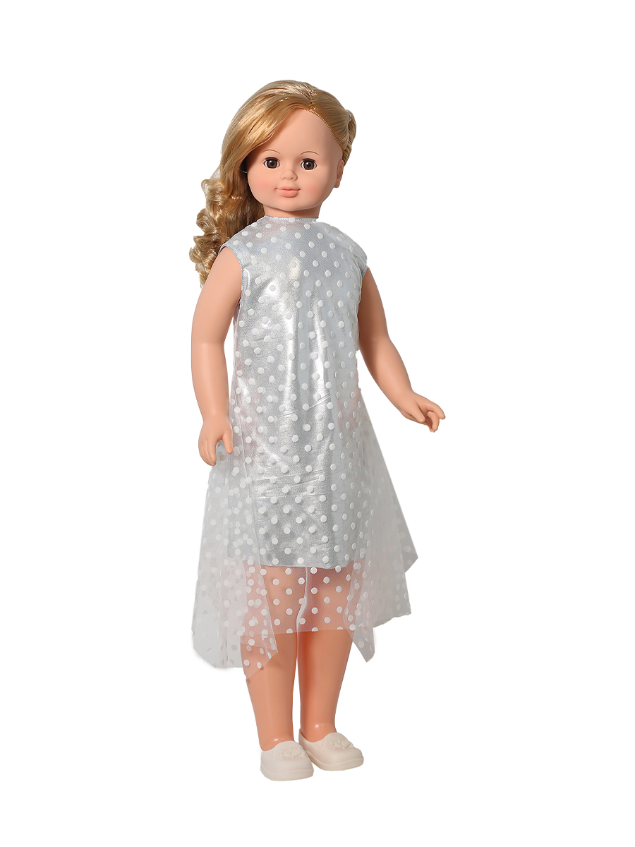 Рост куклы 83 см. Озвучена. Глаза вставные закрывающиеся. Цвет глаз может варьироваться. Ручки и голова выполнены из эластичного, приятного на ощупь винила, а туловище и ноги из пластмассы. Кукла оснащена механизмом движения, её можно водить за руку. Инструкция прилагается к кукле. Во избежание поломки механизма движения куклы её не рекомендуется усаживать. В спинку куклы вставлено звуковое устройство, список звуковых фраз может варьироваться.