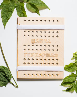 Папка изготовлена из фанеры с вентиляционными отверстиями, предназначена для работы в полевых условиях со сбором гербарного материала. Папка имеет удобную систему фиксации, позволяющую использовать ее на всех ступенях образования. Комплектуется листами адсорбирующей бумаги.